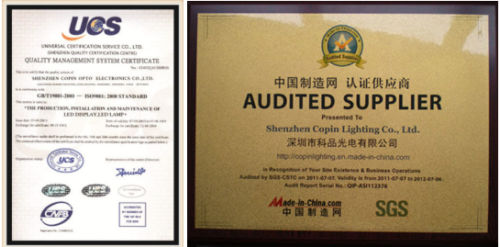 Copin is always insist on “quality of products in order to survive, credibility and development services”as the business purposes. Committed to providing you with high-quality and environmental products and quality services.It’s managed under ISO9001:2000 quality controlling system. Product are conformed with LM80 / CE / RoHS / ETL / standards.