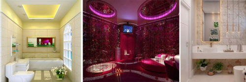 Bathroom is the private space, which express health and love. If it’s always being with warm white colors, most of the led strips are hidden backside of mirrors, drawers, wall corners,even some people use IP65 led light strips around their bathtub,which could change colors and models according to music songs.