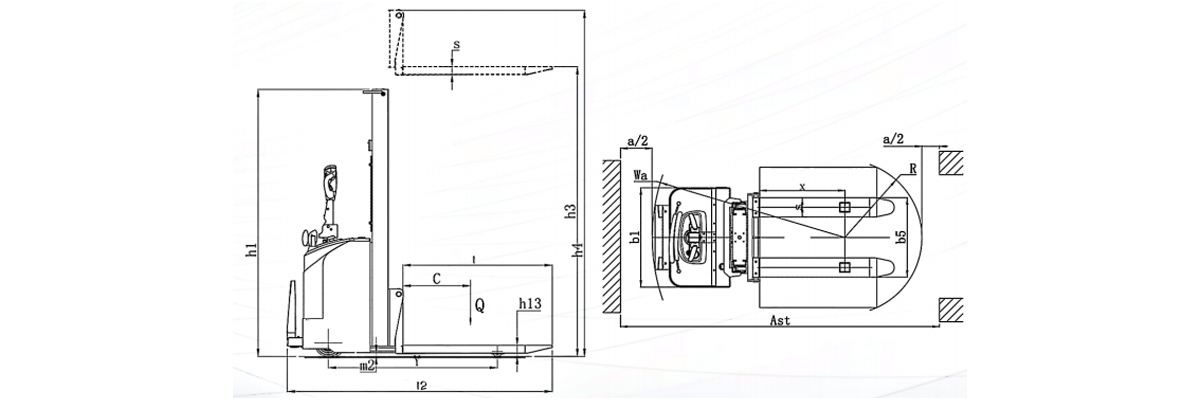 | Aisle Width For Pallet 1000*1200 Crossways(Platform Unfolded) | Ast(mm) | 2910 | 2910 | |
