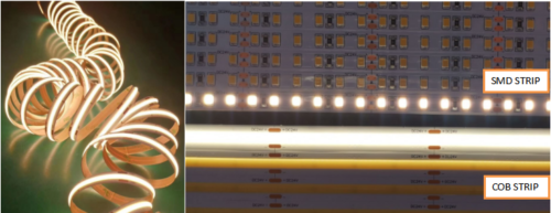 Compared with SMD strip light, flexible cob strip light has more advantages in applications(cob=chip on board):