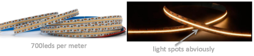 Normal smd LED strip light is always being with 120º beam angle only, even people could make it in high density like 700pcs smd2110 per meter as below,which you can still find the lighting spots obviously.